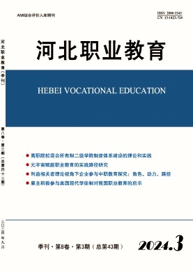 《河北职业教育》是国内外公开发行的职业教育类学术期刊,于1995年创刊,曾用名《乡镇企业研究》和《职业时空》,经国家新闻出版广电总局批准,自2017年第1期起正式更名为《河北职业教育》。本刊为季...