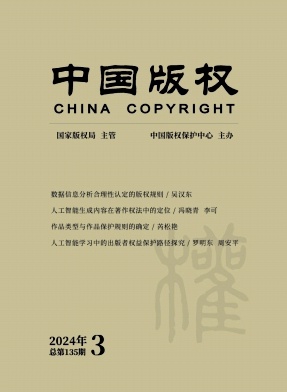 《中国版权》简介 《中国版权》杂志创刊于1991年,前身为《著作权》,2002年改为现名。现由国家版权局主管、中国版权保护中心主办、中国版权杂志社出版发行。30余年来得到读者们的大力支持,在版...